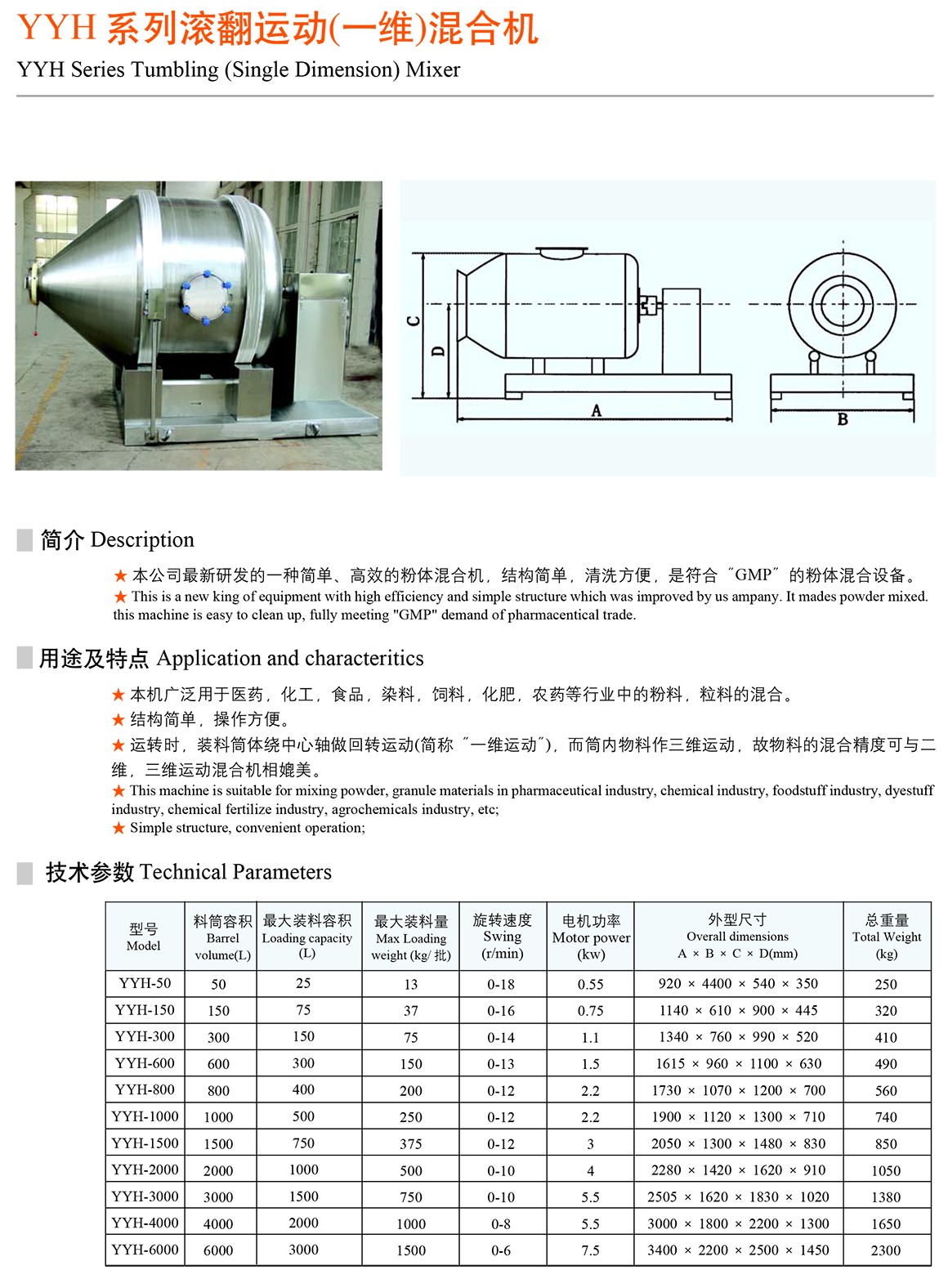 當前位置:首頁>>產品展示>>混合制粒粉碎系列設備>>YYH系列滾翻運動(一維)混合機
